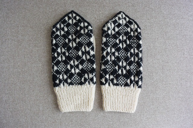 その和風モダンなかっこよさに一目惚れし、ミトンの編み込み模様にアレンジしてみました。
