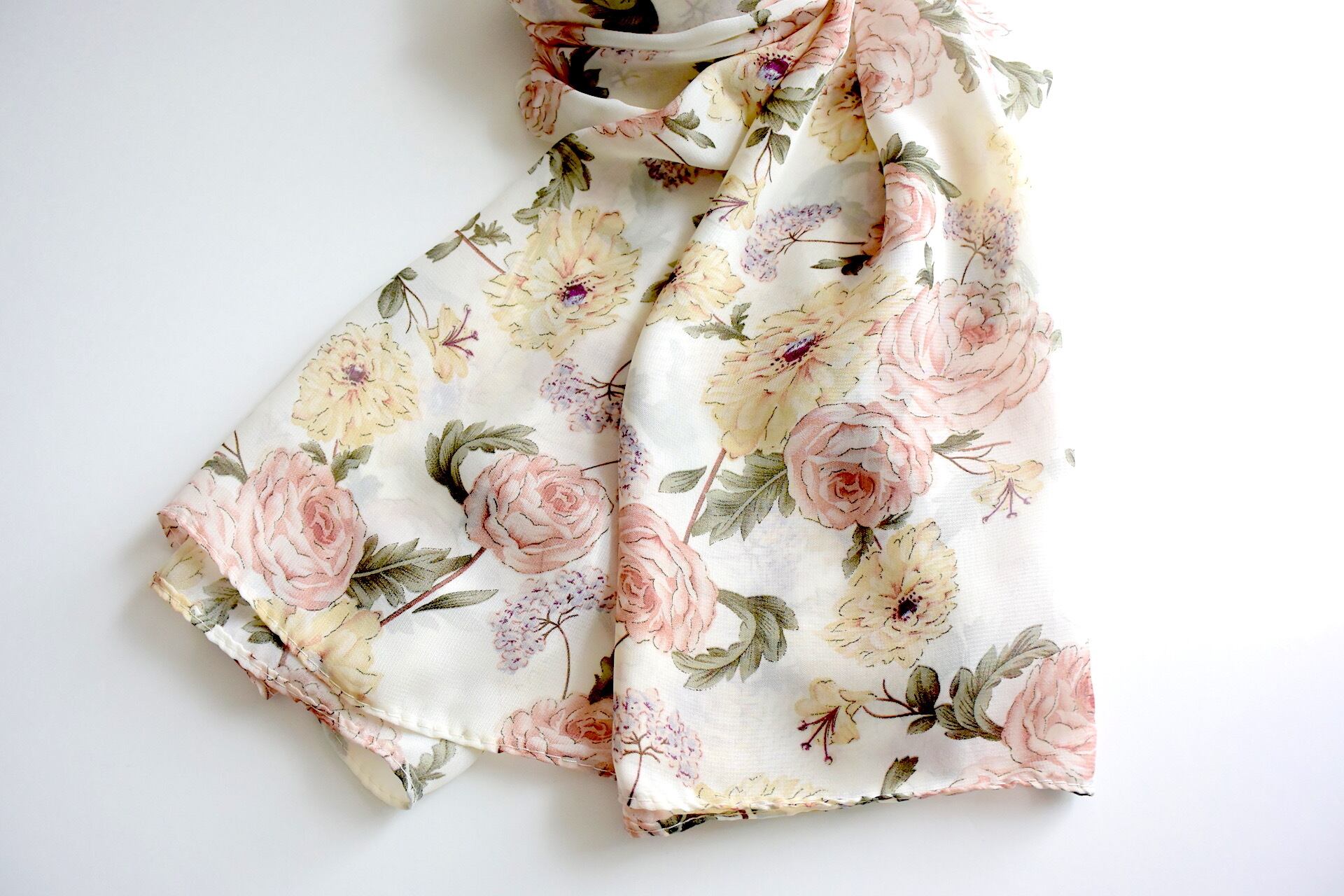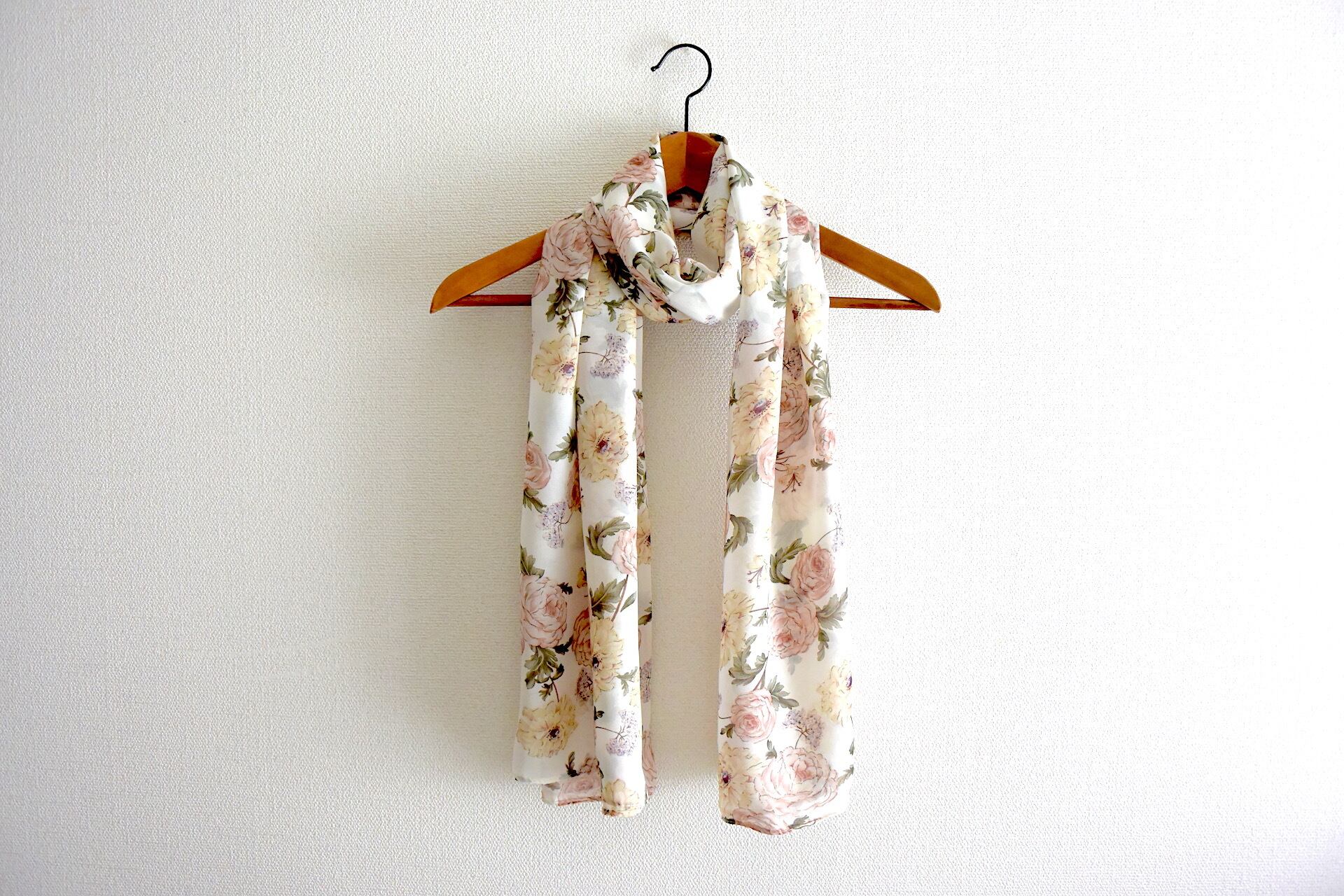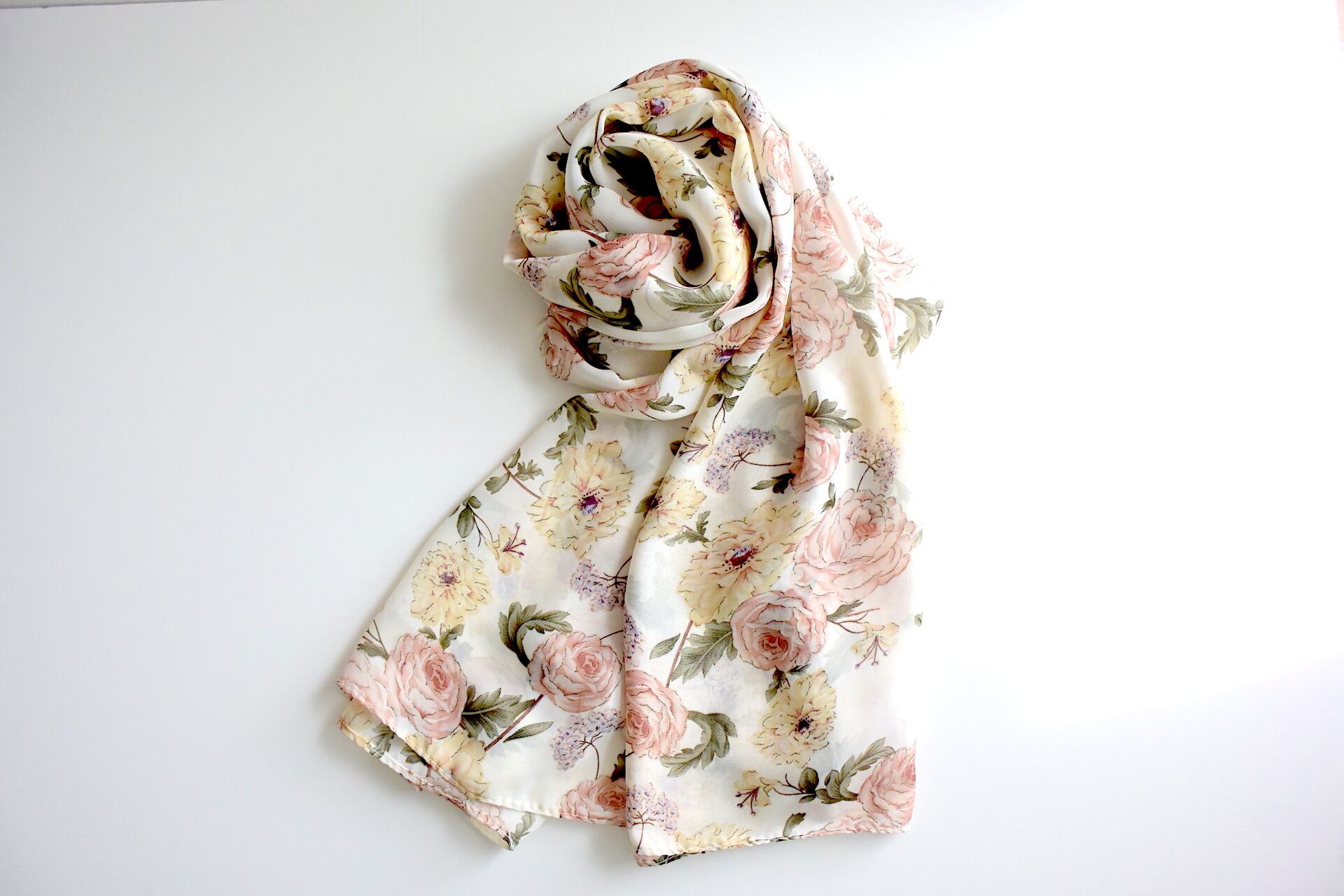 フローラルパターンのさらさらシフォンストール
