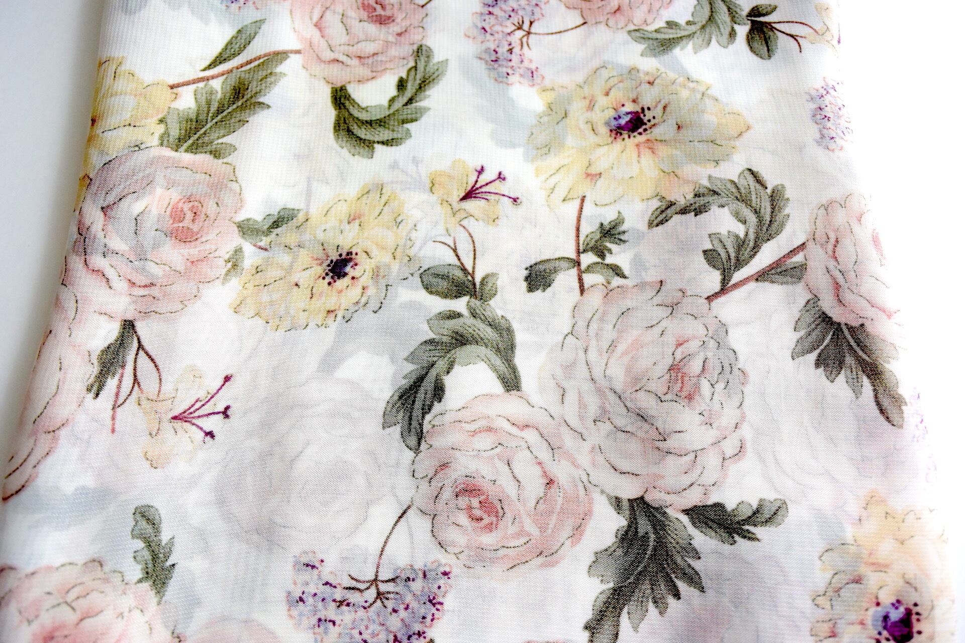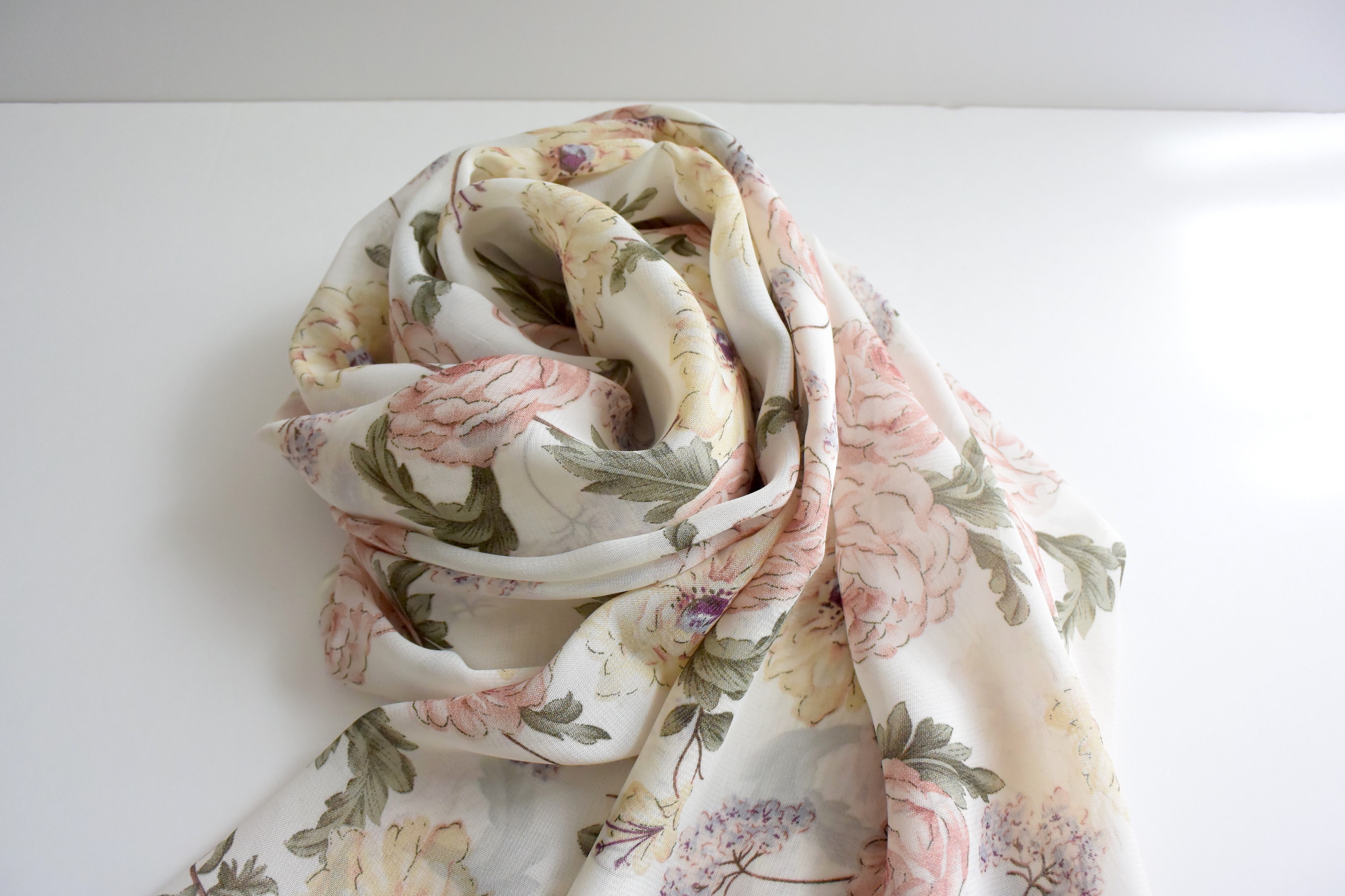 エレガントで上品な花柄で、とろみのあるシフォンのストール。