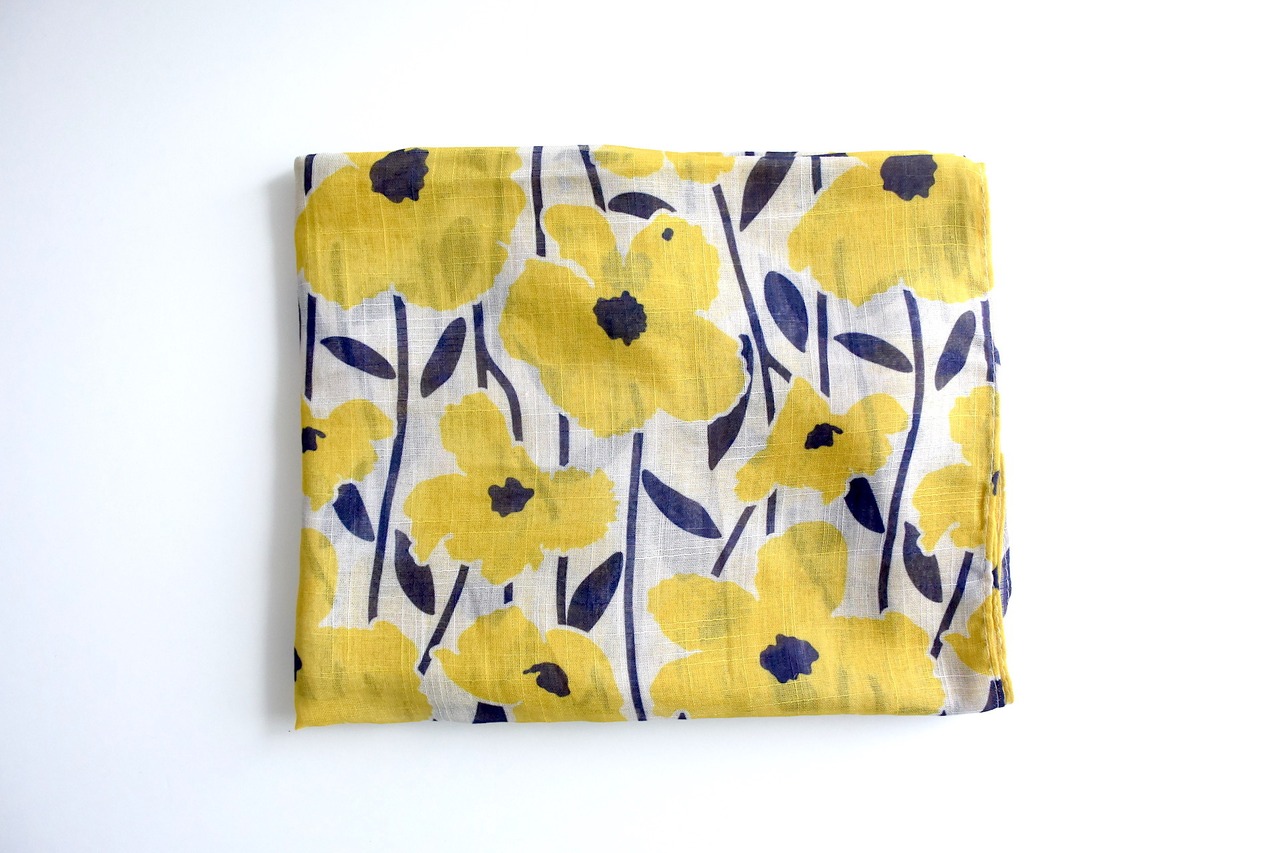 北欧風のポップな黄色いお花が春らしい雰囲気のストール。