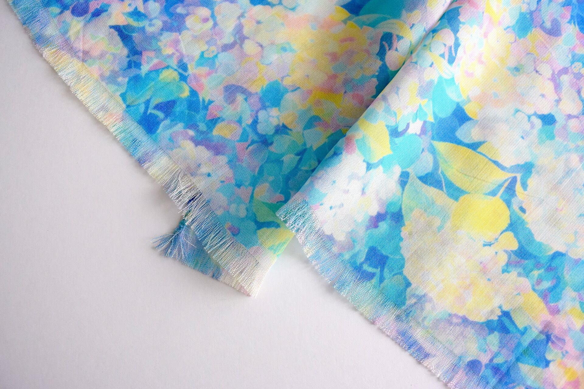 レーヨン 大判 ブルー 紫陽花 ゆめかわ 夢色 ピンク イエロー カラフル