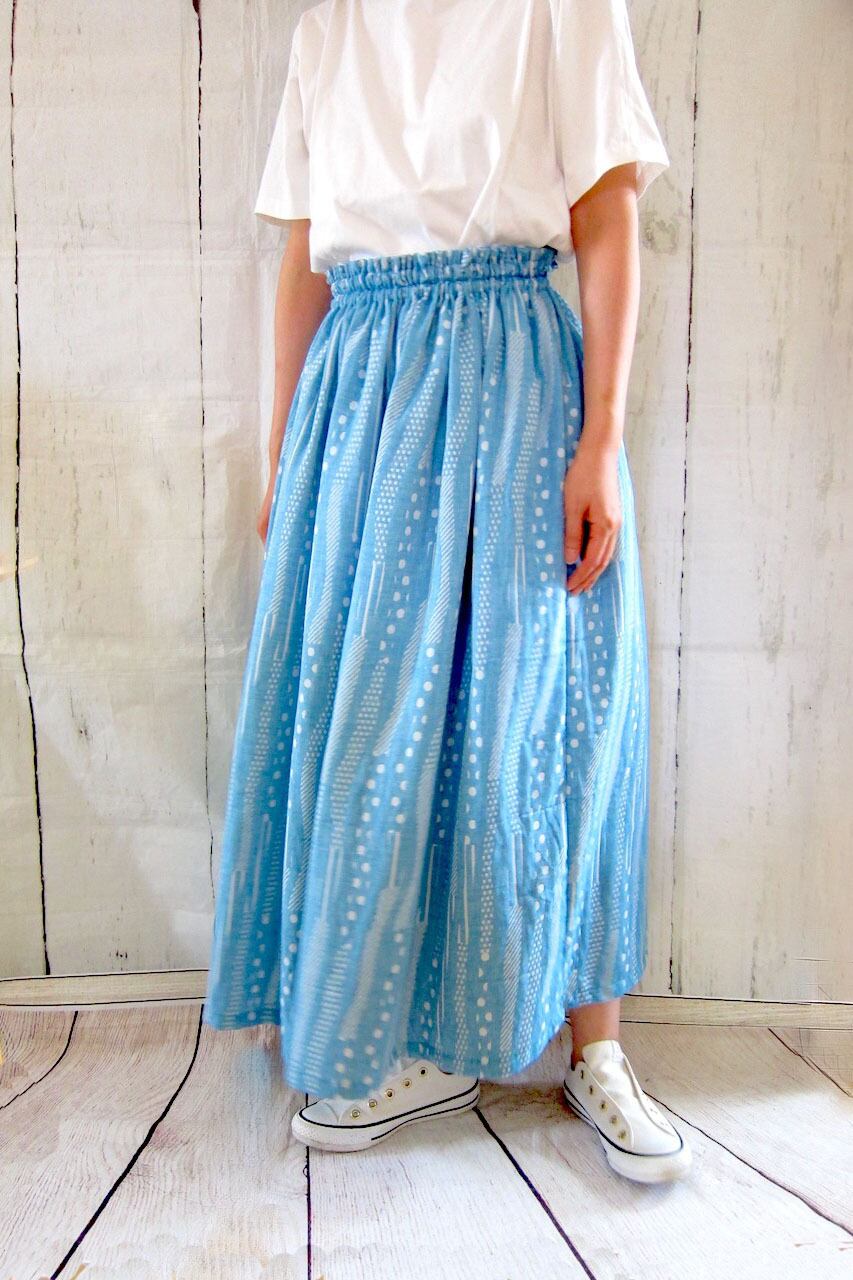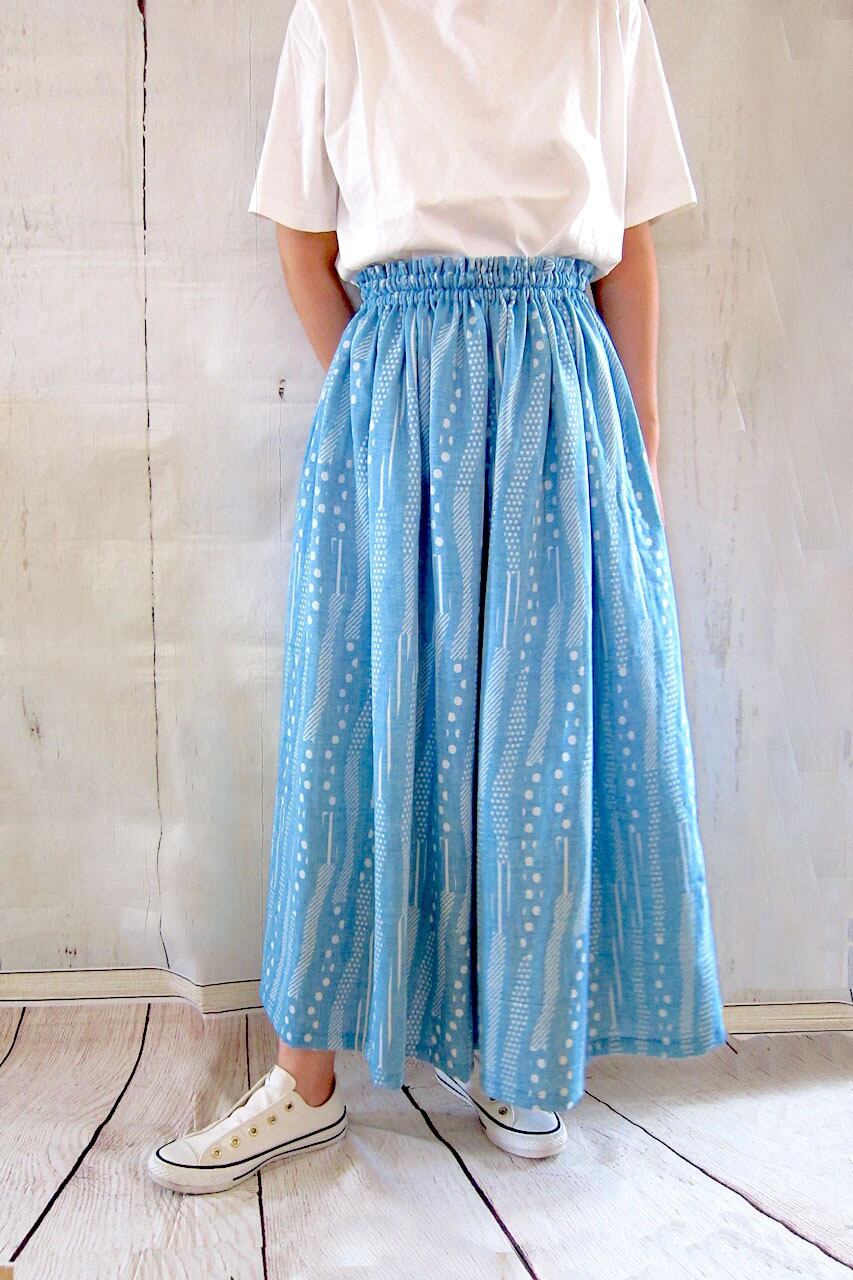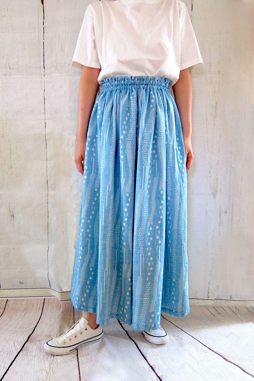 丸と線が描かれたモダンなデザインのジャカード織のダブルガーゼのスカートです。