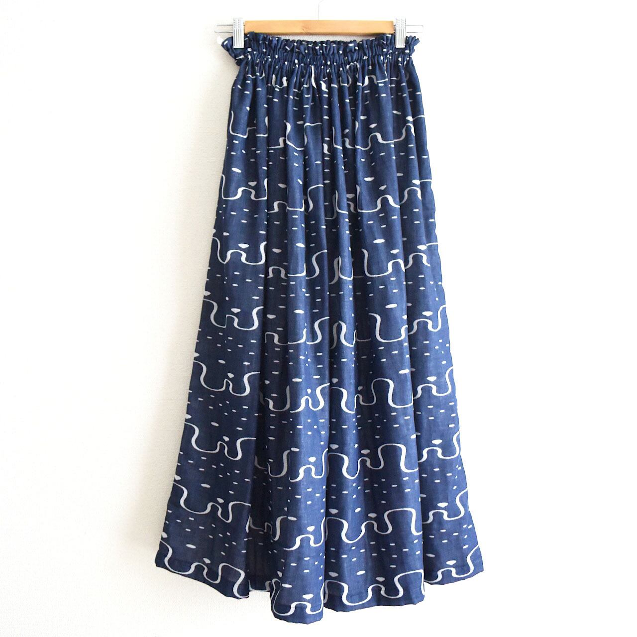 海の波をモチーフにした、ドットと曲線の波々模様がかわいらしい、ジャカード織のダブルガーゼのスカートです。