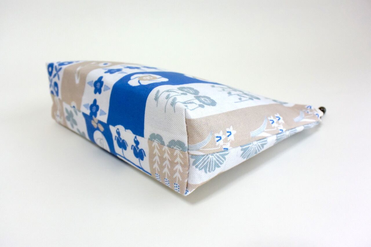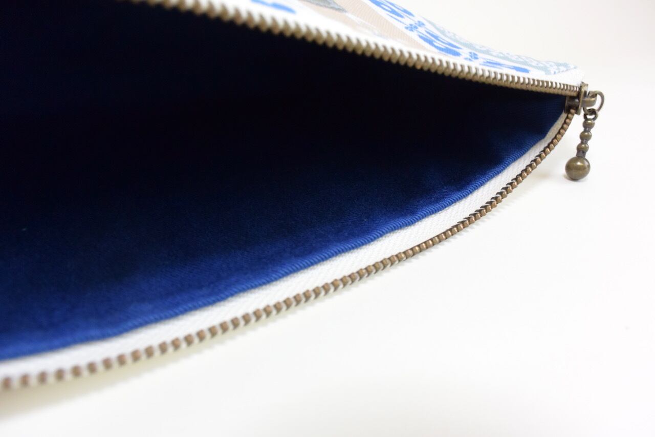 袋口には20cmのファスナーを使用しており、5cmのマチがありますので、コスメポーチとしても、かばんの中にごちゃつきがちな小物もたっぷり入ります。
