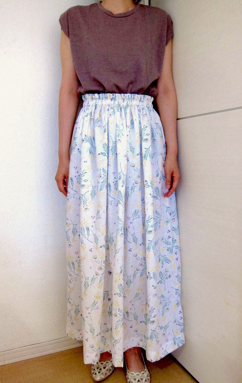 マキシ丈 ロング丈 アンクル丈 ウエストゴム 総ゴム フリル