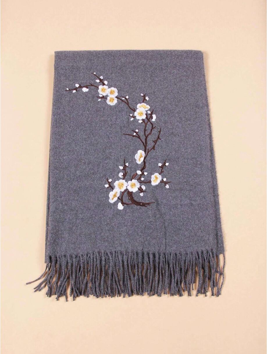 梅の美しい刺繍が施された大判ストールです。