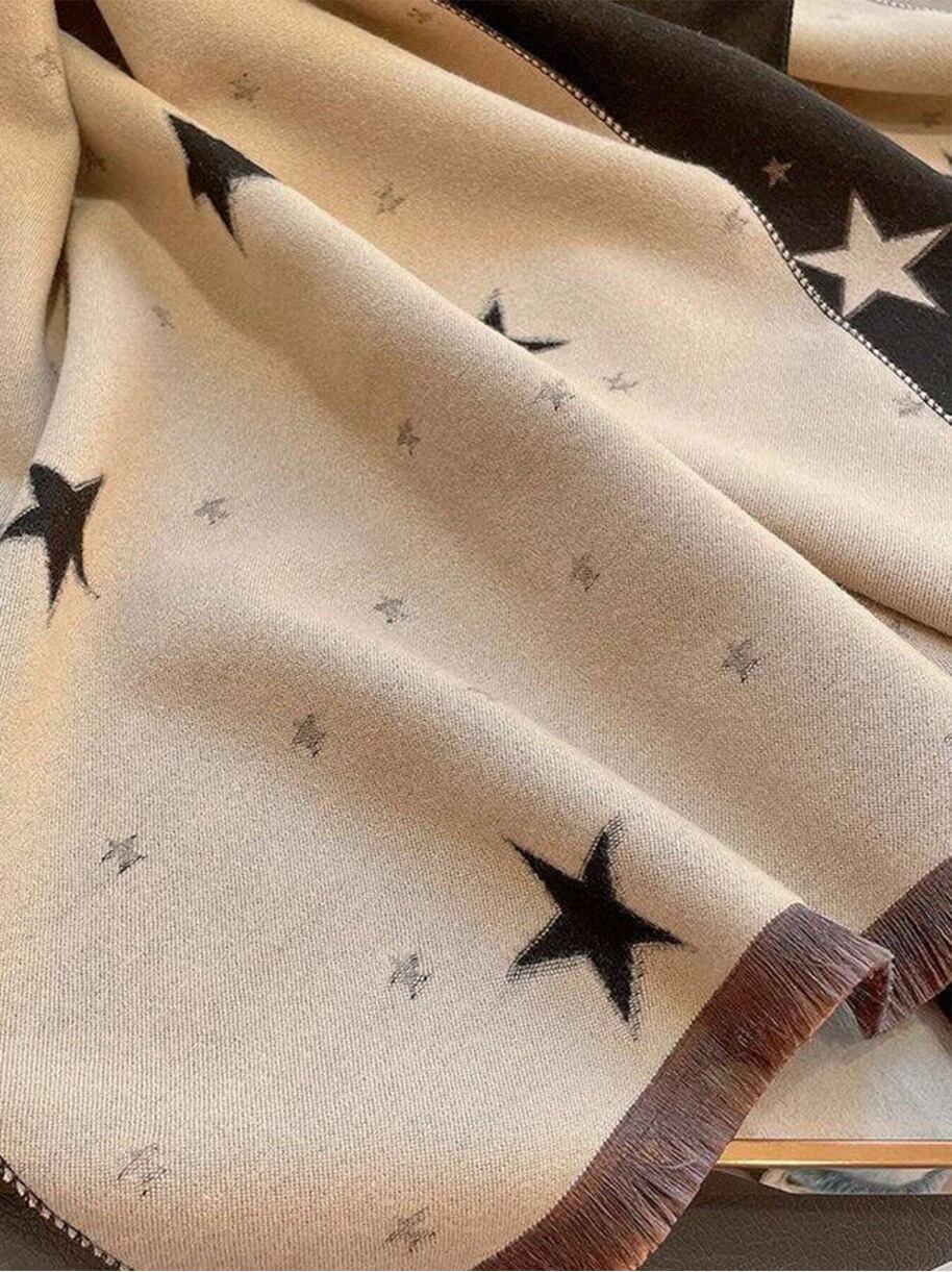 星 スター モノトーン 大判 巻き物 冬 コーディネート 暖かい ポリエステル
